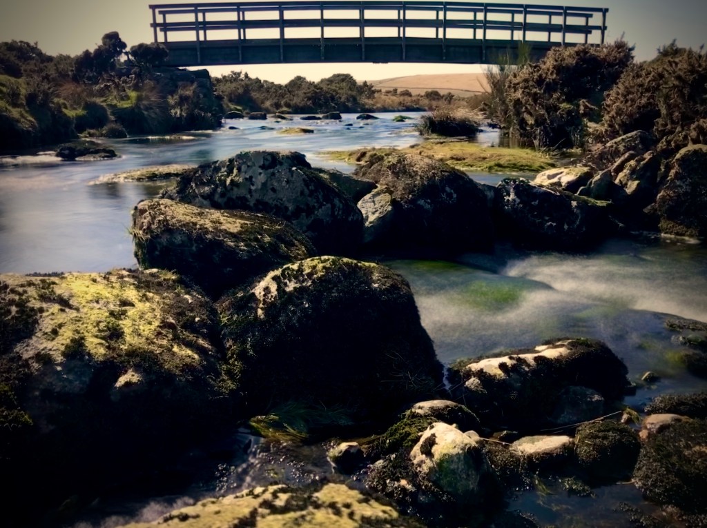 We had a really good rummage round and explore before our tummies once again reminded us about the picnic. We crossed the ‘fairy bridge’ and sat in the shelter of a gorse bush right next to the river. The sun was glorious and the kids were starving. They munched through their lunch and started on ours before eldest attempted the stepping stones crossing and fell in up to his knees. We wrung him out and after collecting a stamp from the fairy bridge letterbox we headed for home.