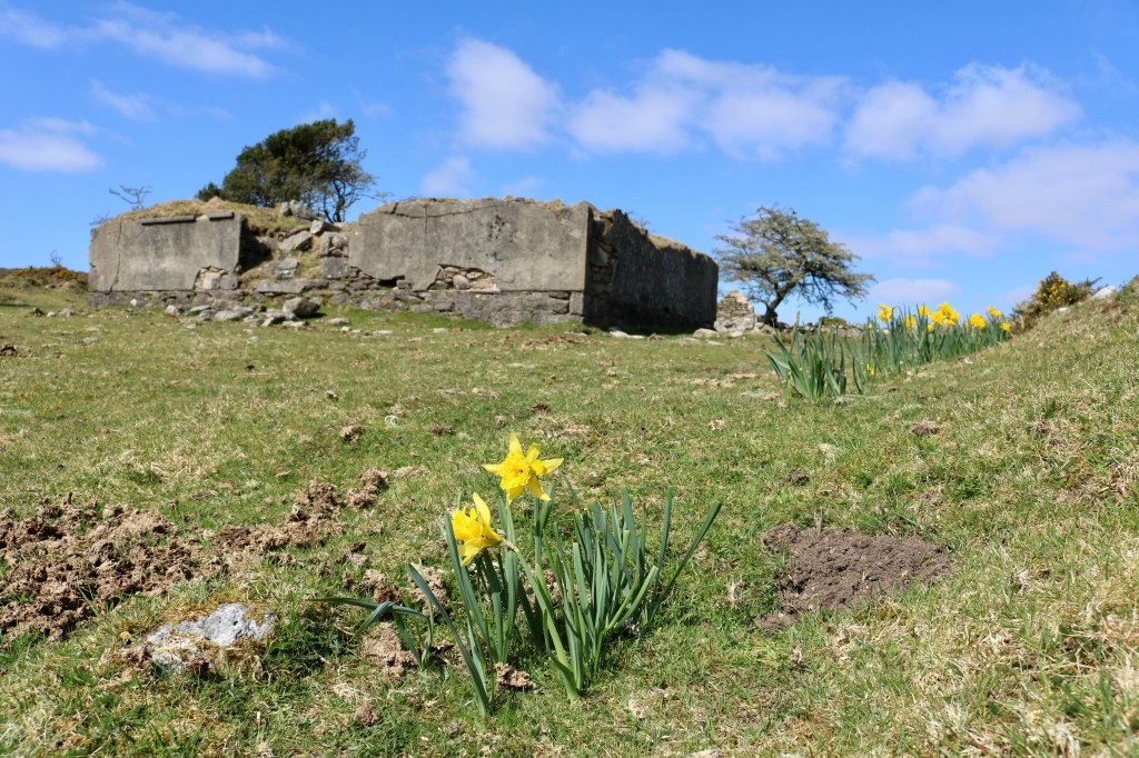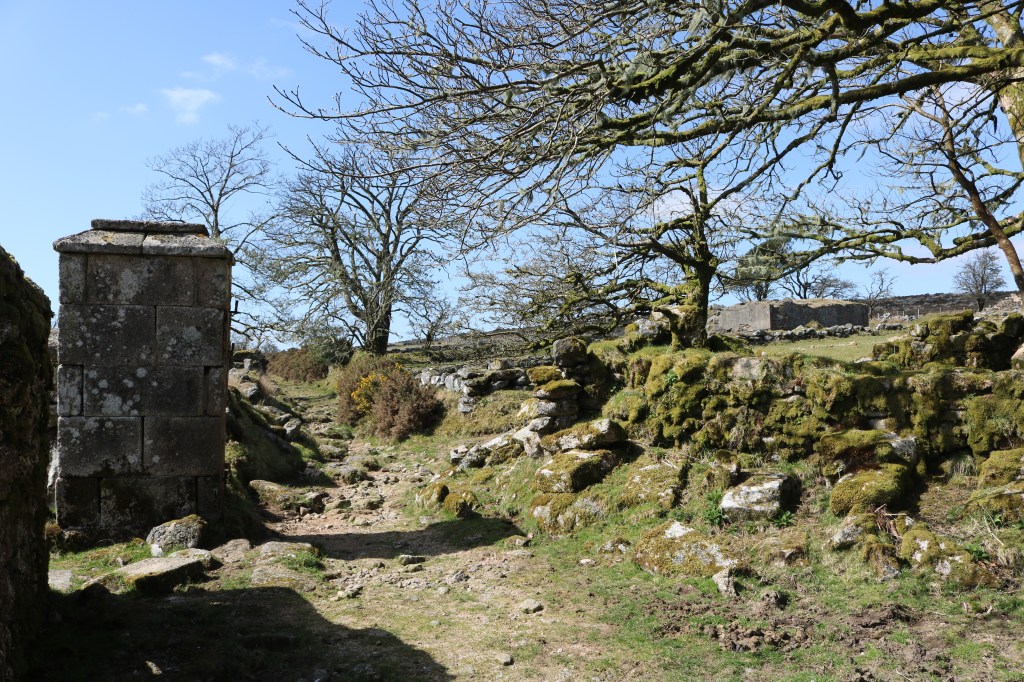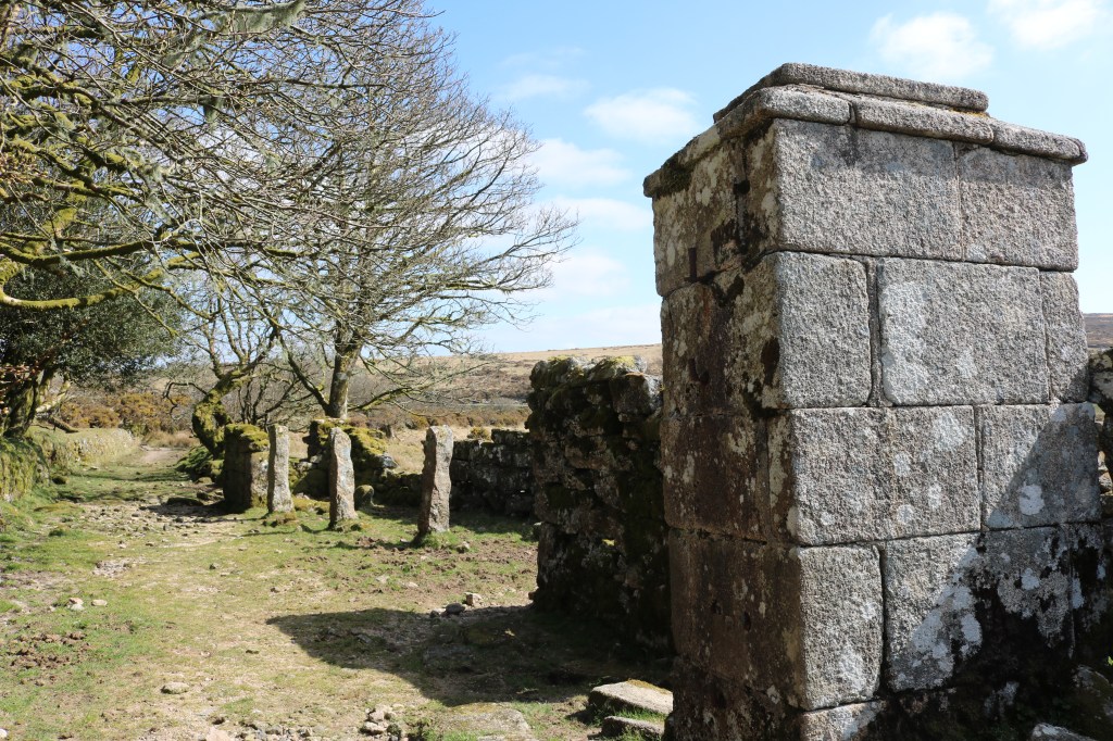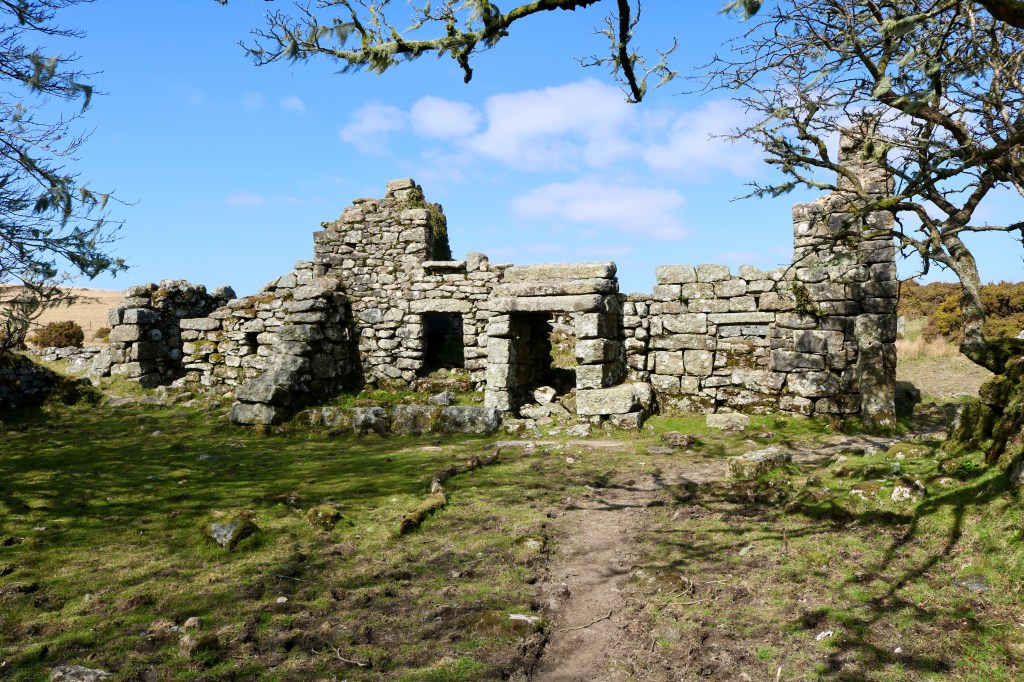 Swincombe is a fun little place to explore. The western part consists of the remains of Swincombe Farm, built as a fishing lodge for the Tor Royal estate and only abandoned in 1955. The ruins include two buildings and the remains of stables and animal pens. Further down the hill are the more impressive remains of John Bishop’s House. This was built as a tin miners house in the 1820s but was occupied by stonemason John Bishop for over 30 years and still carries his name. After he died in 1892, the lease and then ownership passed to the Coaker family who as we saw are still actively farming nearby today. The building has been vacant for over 100 years now and has been subject to some restoration work, with the impressive door lintels having been re-erected by the National Park in the 1980s. The Dartmoor Trust have a great photo of it as it was in 1940. Today it is in quite a sad condition and it is probably worsened by the herds of cattle that roam the area, but it is still a fascinating ruin.