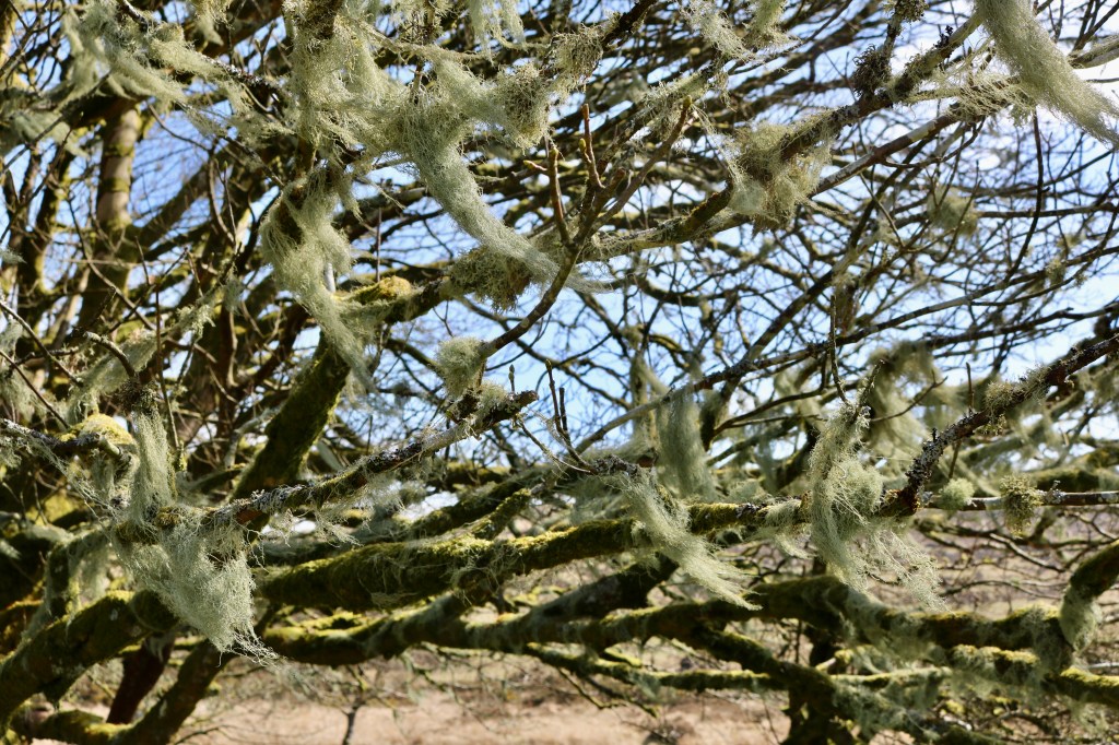 The air around here is super-clean and this is evidenced by the sheer number of ‘old mans beard’ lichens that cover all the trees in the area. Lichens of the Usnea genus only thrive in pollution-free air such as you get when the prevailing wind comes from the Atlantic, and some parts of Dartmoor (eg Wistmans Wood) are famous for them. They seem to be particularly large here and I like to tell the boys that the local wizards have washed their beards in the river and hung them up in the trees to dry.