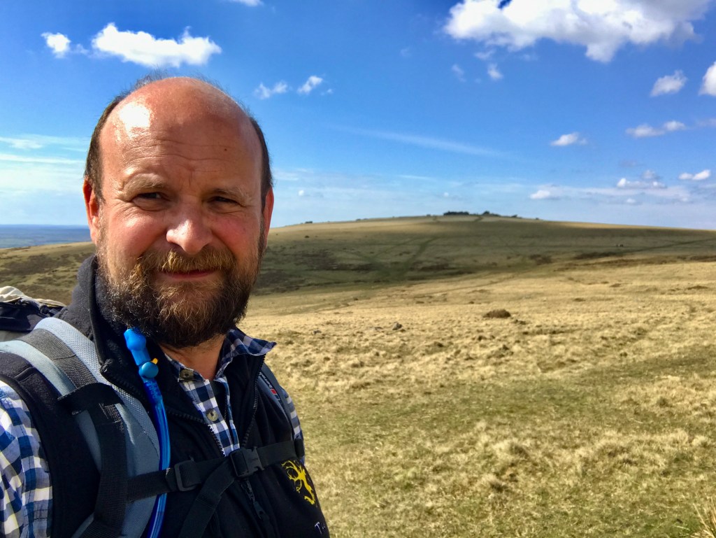We turned and walked the way they had come to the top of Sourton Tors, one of my favourite vistas on the whole of the moor. It’s one of those amazing spots, much like at somewhere like Pen-Y-Fan in the Brecon Beacons, where the ground drops away to the low-lying farmland below and you can see many miles to the north. In fact, it was just about clear enough to be able to see the thin blue line of the Bristol Channel 30 or more miles away. We sat and enjoyed having lunch on top of a tor without huddling out of the wind for the first time in quite a while!
