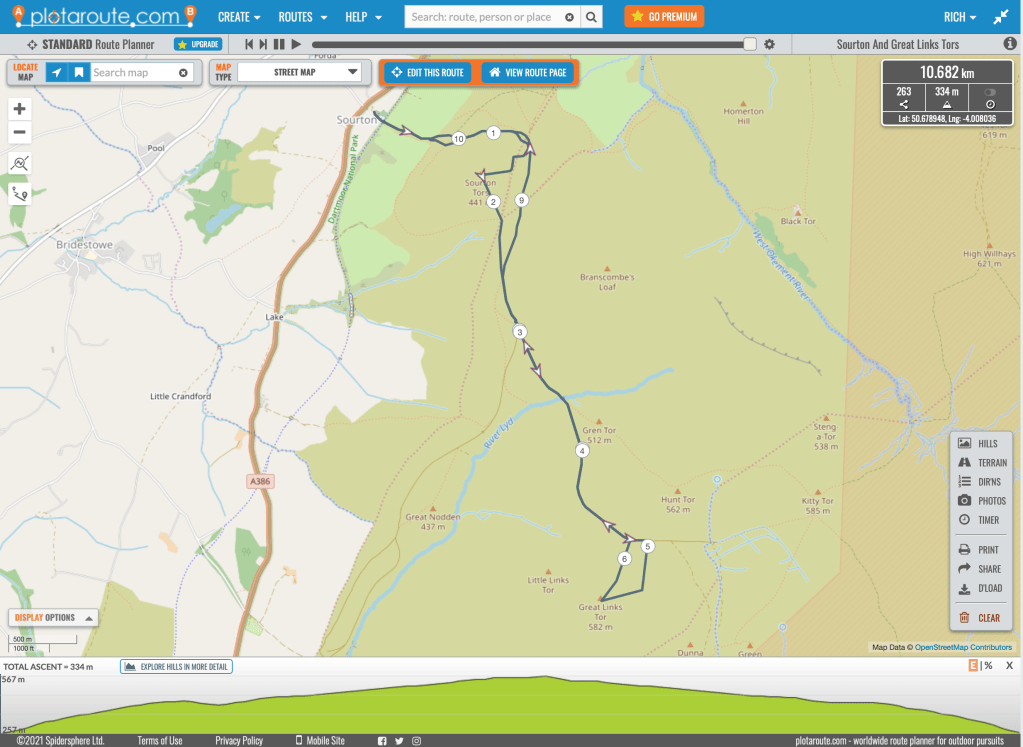 I’ve heard it said that you can see both the Bristol and English Channels from here, but I’ve never had a clear enough day to manage it. Today we could see the coast around Plymouth but the Bristol Channel, speculatively visible from Sourton, was now beyond the horizon. None of this took away from the drama of the setting, with patches of sun and cloud illuminating and shadowing parts of the landscape below. Great Links Tor itself is substantial enough to have a few climbing routes listed on it, and even getting to the trig point requires a short scramble. It’s a fantastic place; wild, mountainous and remote, and has to be on anyone’s list of essential Dartmoor tors.