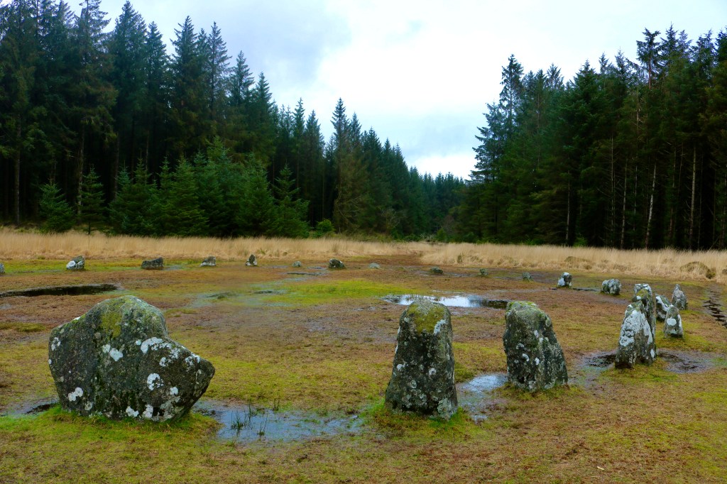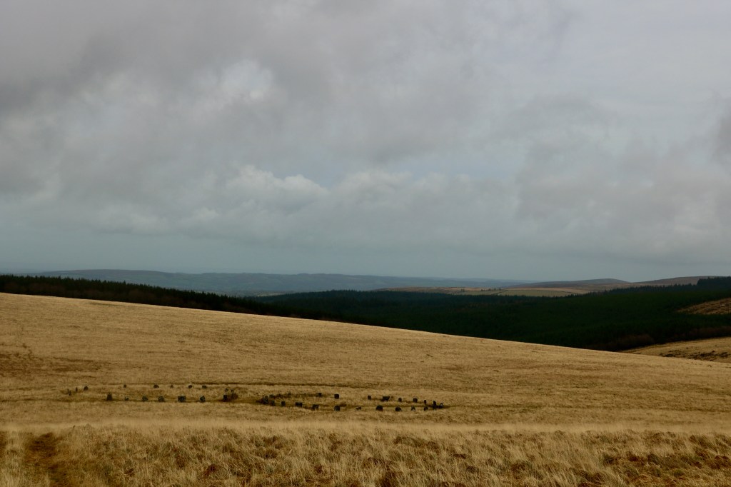 So for our first family walk of 2022 we headed to one of the gateway tors to the high moor, Sittaford Tor. We started at Fernworthy Reservoir and took the old Teignhead Road through the forest towards the open moor. Fernworthy is perhaps the best of the ‘new’ coniferous Dartmoor forests; certainly the most extensive and with numerous easily-accessible archaeological sites. We stopped for a look at Fernworthy Circle before taking a turn off the main route and coming on to the open moor just to the west of Tom’s Hill.