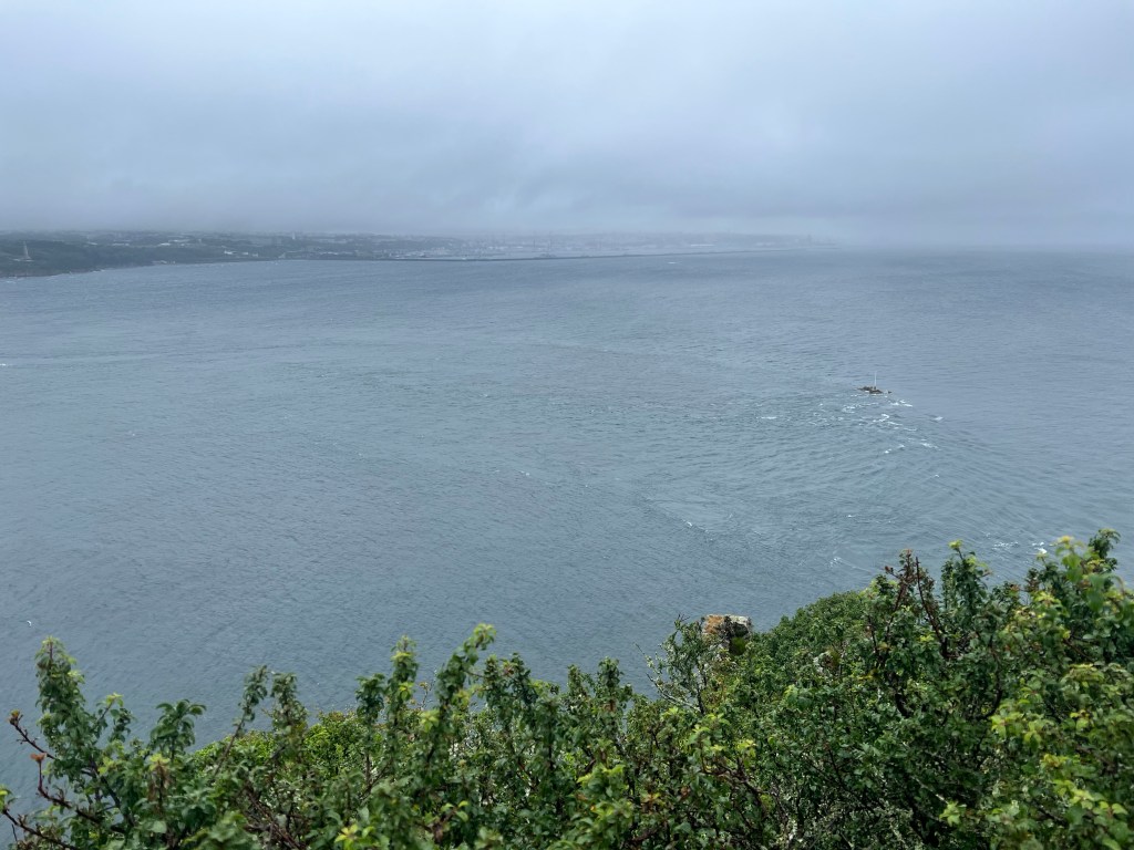 Here, looking out into the Rade de Brest, I felt the weather subtly change. It wasn’t raining any more and looking to the south there seemed to be an end to the cloud. Was that a patch of dappled sunlight? Prematurely perhaps I packed away my waterproof jacket, dosed up on sweets, got my sunnies out and told myself I was going to enjoy this.