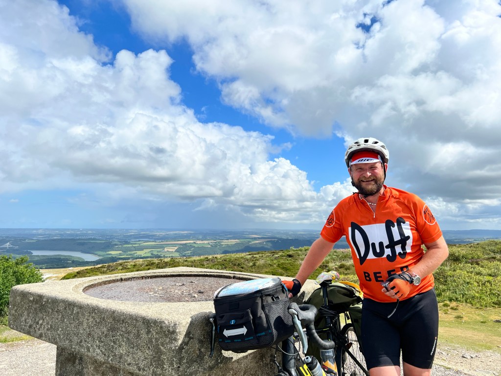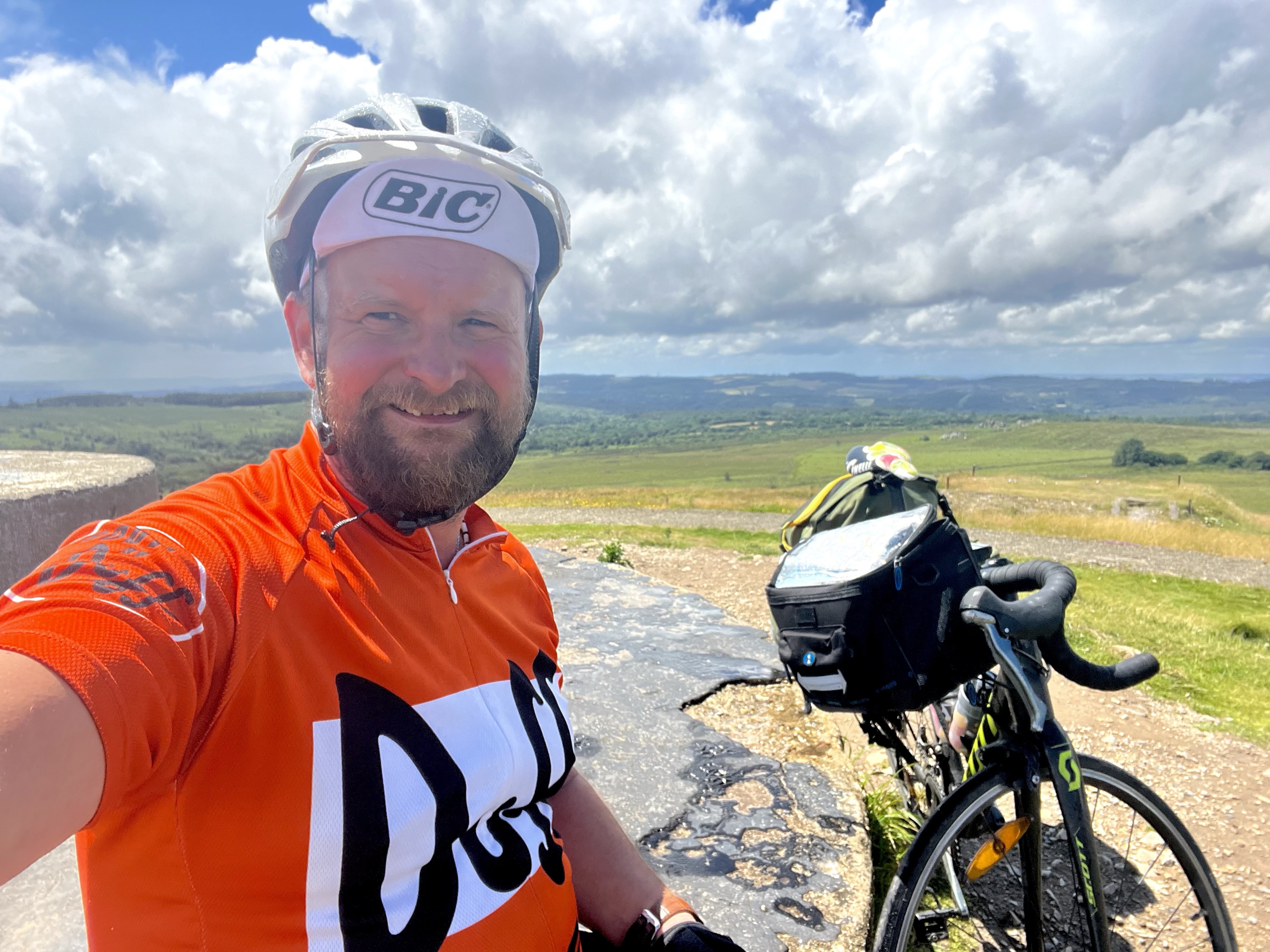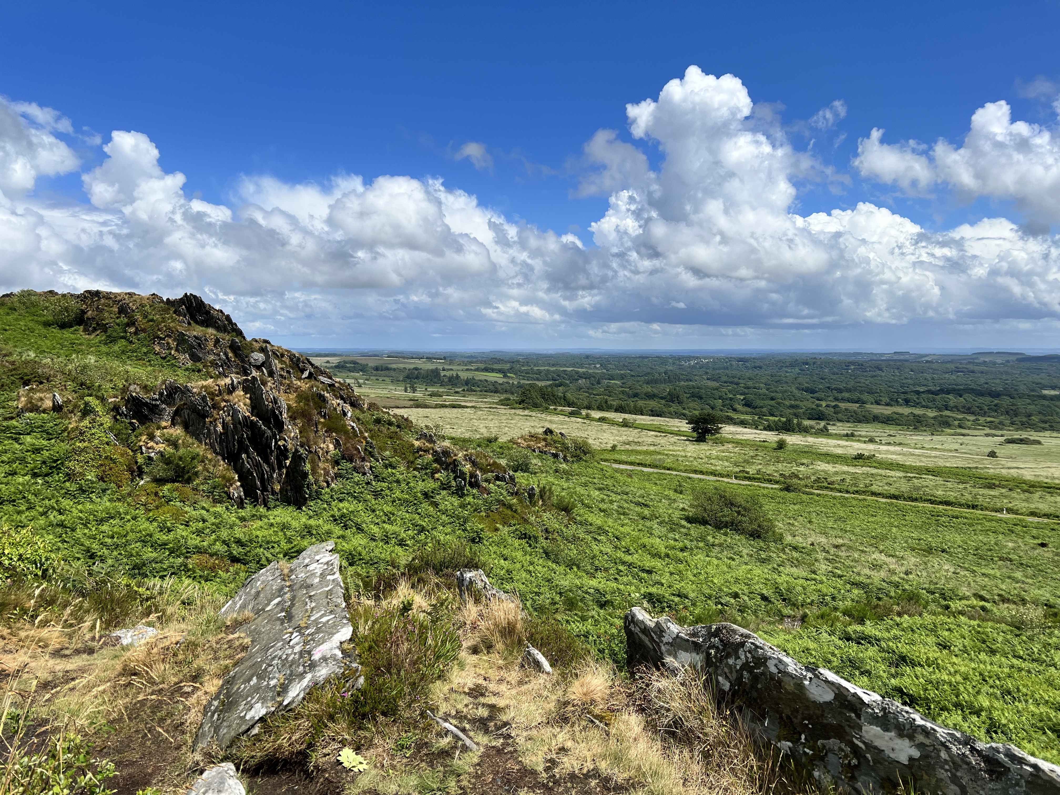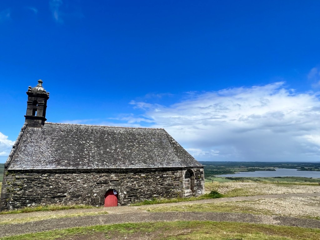 The road out of Crozon soon followed the usual template: long tiring climbs followed by short and steep descents. Never climbing long enough to get a rhythm going, always descending too fast for it to really help. It makes for hard graft. Just when I was thinking of alternative routes, it appeared on the skyline. Menez Hom, the legendary hilltop that has been revered since Neolithic times. It loomed darkly over the landscape and the road rose to meet it. My legs aches from yesterday’s effort but I found my rhythm and climbed. You put in the work, you get the reward. The views started to open out and, although I had planned to ride on the main road round it’s shoulder, I was drawn to it. I turned off and kept climbing. I tried to stay in the saddle as long as I could, standing only to give my muscles a rest, riding hard but never struggling. Before I knew it the summit was in sight – I could actually ride to the top! I exchanged ‘chapeau’s with a chap starting down and suddenly I was there, the Bay of Douarnenez spread out before me, the Crozon peninsula becoming eaten by cloud to the west. To the north I could pick out the Pont de Térénez. People have been awestruck on their first time at this summit for thousands of years.