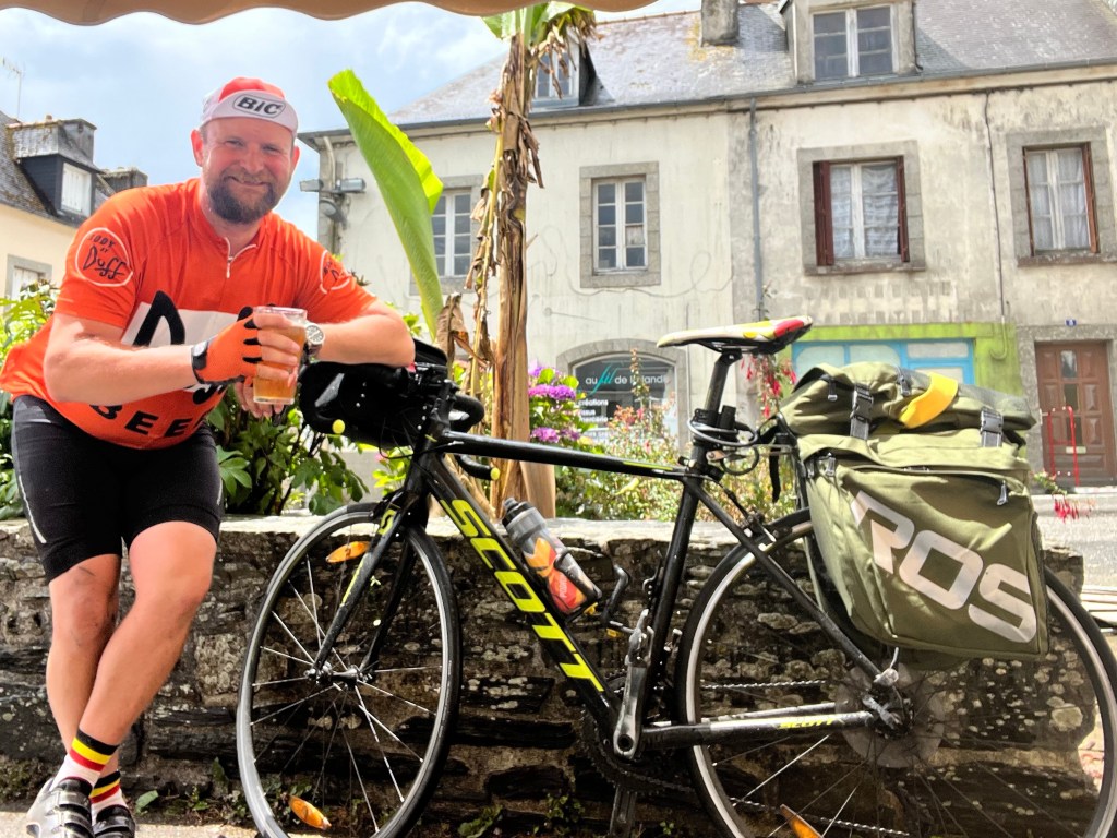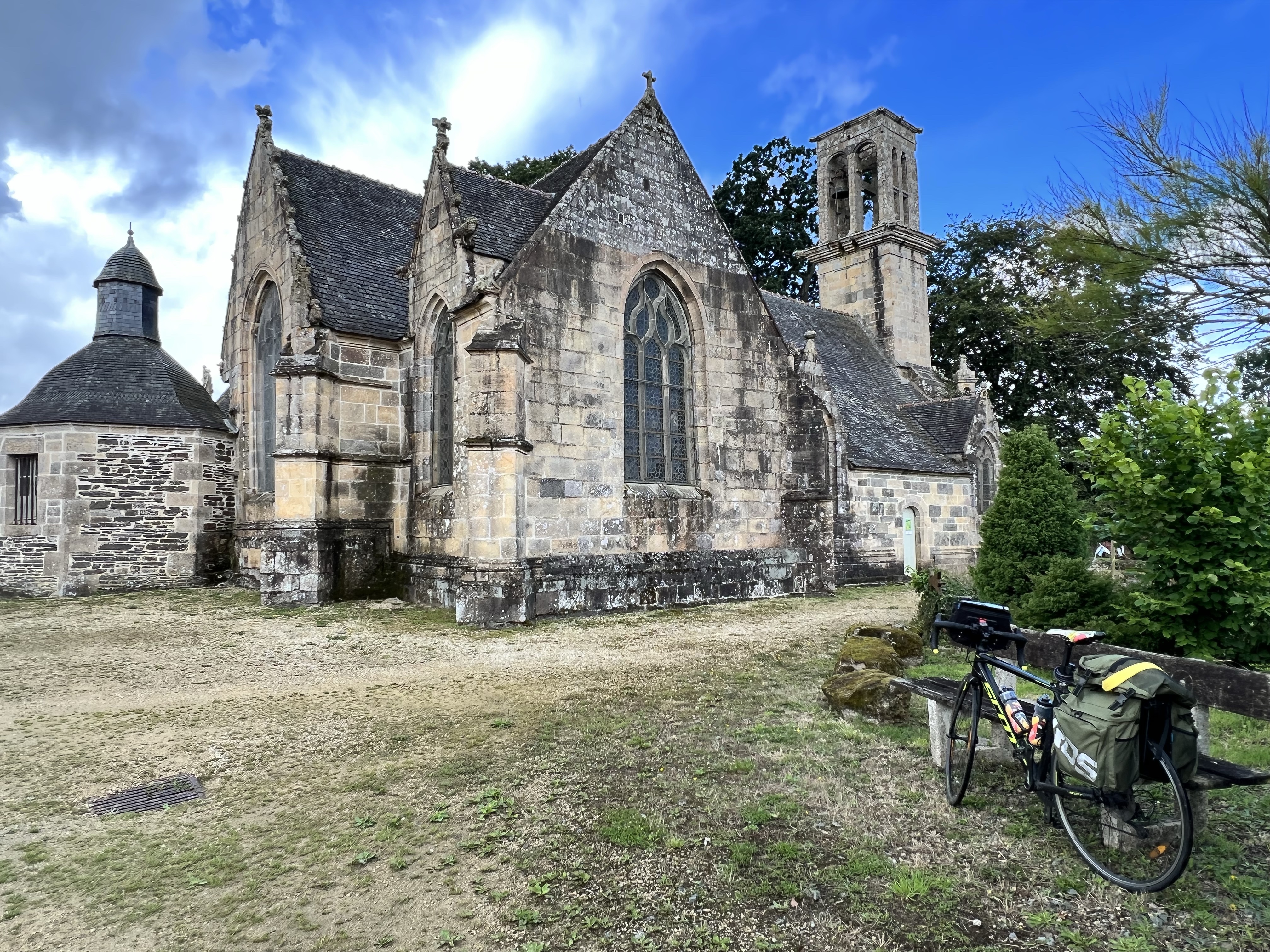 The next stretch took me to Blasparts and although only 20km it was somewhat complicated. I was nervous of the big junction by the motorway and instead followed the river up to Saint-Ségal, a safer but harder route. It was all ups and short downs again, and I was struggling. Thunder rolled around as I sat outside a church on a hilltop square. My legs had gone and as much as tried to fill them with jellybeans it was to no avail. I limped into Brasparts after what felt like a lifetime, exhausted, wet and miserable. I needed a beer and a quiet word with myself.