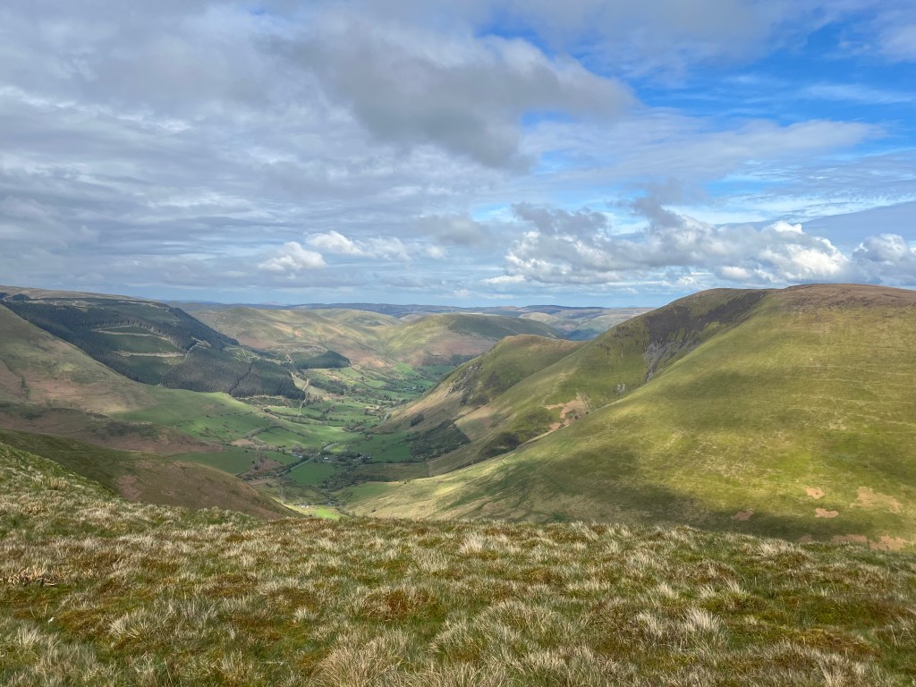 We took a few photos and were soon joined at the summit by a lovely lady who was walking the Welsh Nuttalls, the 190 hills and mountains over 2000 feet. Waun-oer was her sixth. She had had knee surgery in both knees a couple of years ago and was so encouraging to Freddie as he is recovering from surgery of his own. We left her resting her back against the cold stone of the trig point, enjoying the quiet air and widening views. She was the only other person we saw on our walk, and I was slightly envious of her solitude.