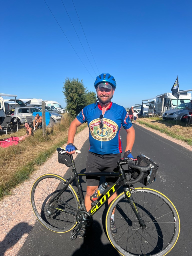 Slightly fuzzy, I woke at 6am, found myself a coffee and waited to dock at Ouistreham. I knew there would be a long day ahead, but I didn’t know how far at this stage. It was 120km to meet Graeme at Mortain, where the Tour de France would pass through on the penultimate climb of the day, and another 110km to the holiday home he had booked. We planned to just see how the day went, and if we needed a lift for the last few kilometres then that would be fine.