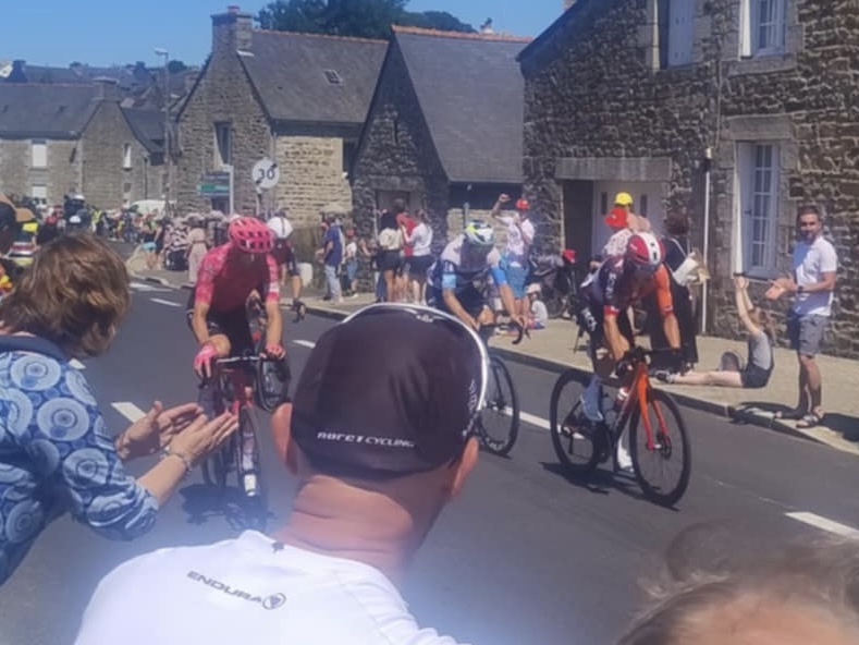 But the Mûr-de-Bretagne – literally the ‘wall of Brittany’ – was the big draw for the whole adventure. It might have been my whole reason for being there. We’d both watched Dan Martin win there on TV in 2018; that was the year Geriant Thomas won the tour, and G wrote a memorable chapter about it in his memoir of the race. He was in the breakaway that day and would surely try an attack again this year. And two years ago, Graeme and I took in the climb on our annual trip, our first big Tour climb on a memorable day. It was difficult to dismiss the plan, to cheer G on as he made possibly his last attempt at a stage win on a climb we knew quite well. But yesterday I hadn’t taken enough care of myself and suffered mild heatstroke, and I resolved to look after myself better today.