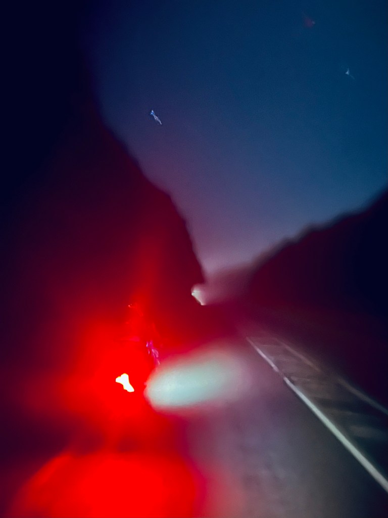 From Salisbury we followed the A338 south towards Ringwood; a busy road that ordinarily would be unpleasant to cycle on but at the time of night was fast and clear. Numerous HGVs passed us but all slowed down, waited for a gap and gave us a wide berth as they carefully overtook. It was 3.30m, a cool mist was starting to form over the lowlands, we were ahead of time and feeling good.