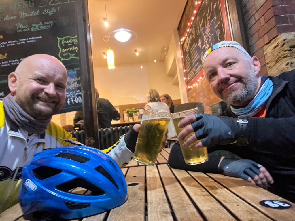 From Cheddar the route took us on the Strawberry Line back to Bristol, a nice gravel route that cuts through a gap in the Mendips just north of Axbridge and sweeps gently down into Bristol via Yatton and Backwell. It was a great choice for the route back in, keeping tired legs and brains well away from any traffic and the gravel is for the most part not unpleasant. The friendly Strawberry Line Cafe at Yatton was still open and we were awarded an extra strawberry sticker in addition to our official audax star. Like the eight-year-olds we are at heart, we left feeling very pleased about this.