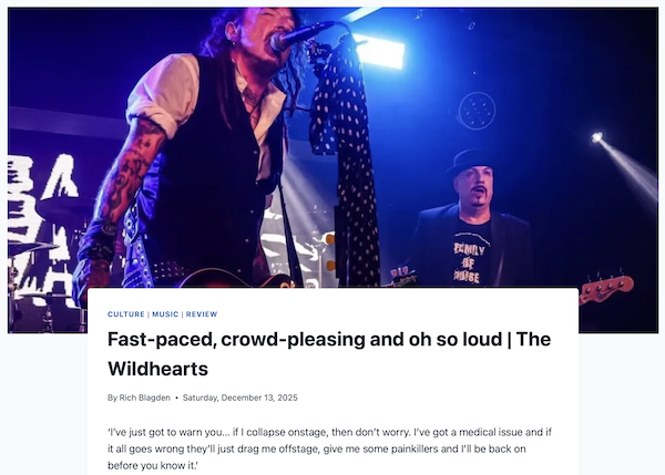 One of my favourite bands, the Wildhearts, came to Torquay to make a right old racket in December 2025. Here’s my review of the gig, supplemented by some great photos from AP Photography Somerset.