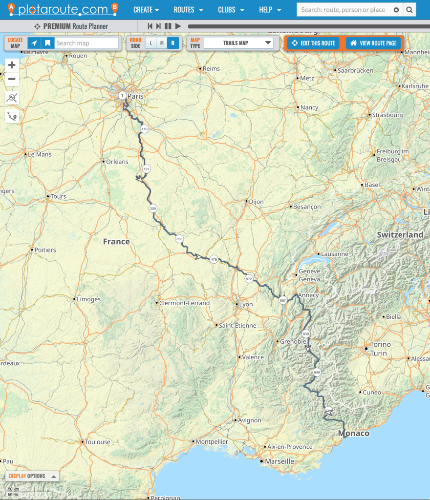 Paris-Nice itself is, of course, a spring race. Most of the Alpine passes don’t open until June, so the race takes a lower route, avoiding the big passes that the Tour de France traverses later in the year. This was our first decision – do we want to do the big mountains, in which case it’s a midsummer route, or follow the Rhône valley down from Lyon and work around from there? We decided that this might be the only big trip we might make like this, so so we decided to leave the lower terrain at Maçon and then head for Annecy and the Alps. This in turn meant a summer route – and conversations about time off work.