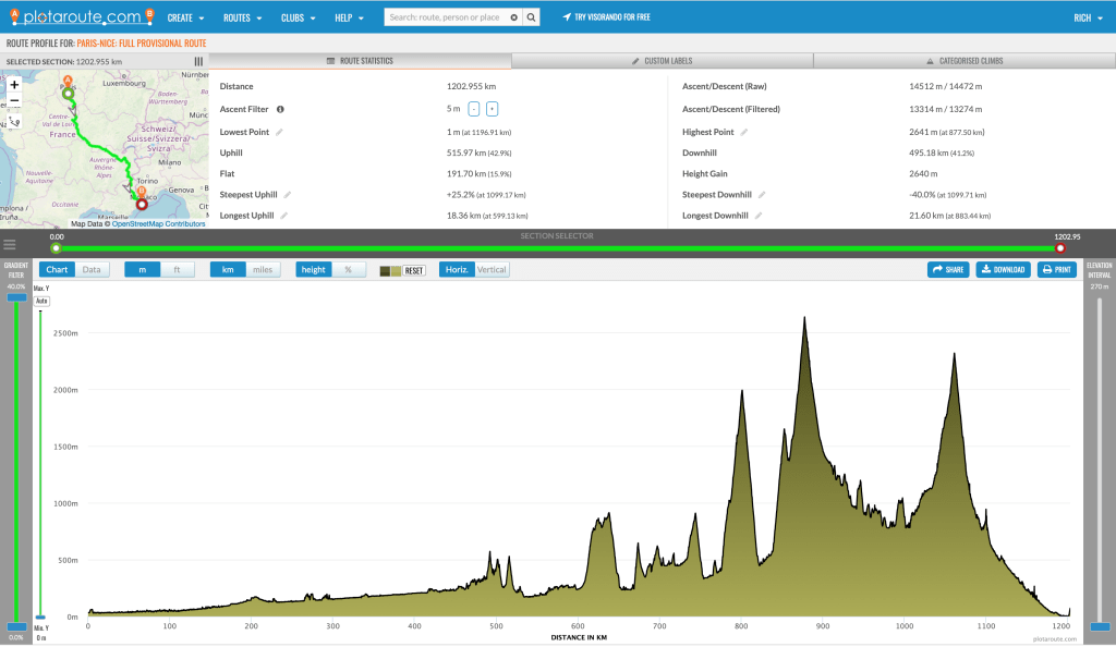Over the last few years, my old schoolfriend Graeme and I have gone to France for a long cycling weekend. It’s always a good laugh and a pleasure to be able to spend time catching up with one another, and over the years we’ve covered many of the major routes in Brittany and Normandy. To celebrate both of our 50th birthdays, we thought we’d take on a big trip and Paris-Nice quickly became the favourite option. Some general googling established that it would probably be a manageable 1200km or so, and over the last few months planning has started in earnest.