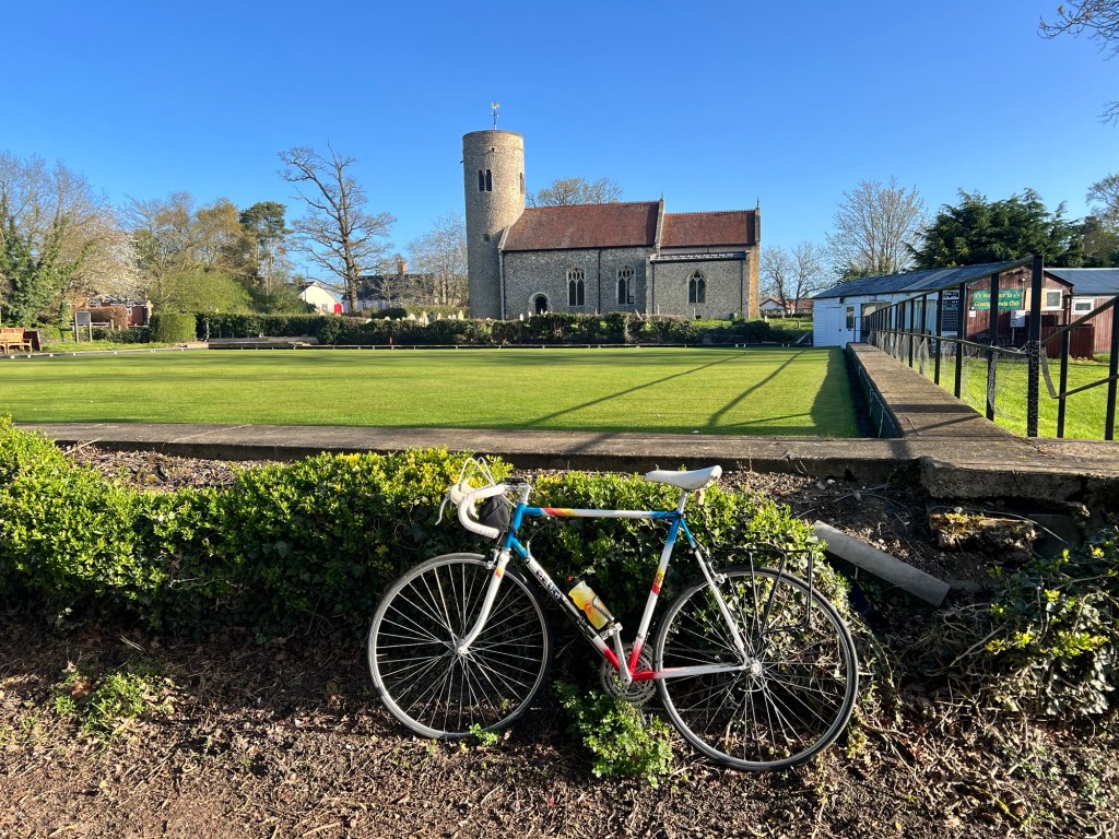 I spent the last few kilometres zig-zagging through villages close to the campsite: Bunwell, Spooner Row, Old and New Buckenham, fighting into a fierce headwind as I went. All had tempting-looking pubs and, by coincidence, we ended up having a pint in my control, the Gamekeeper, later that day.
