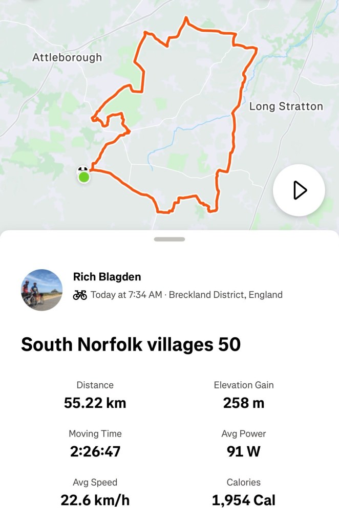 A good test for the Peugeot then, and a fun easy exploration of some of the local villages. My first time riding in Norfolk and, if they could just sort out a good view here and there, I would highly recommend it.