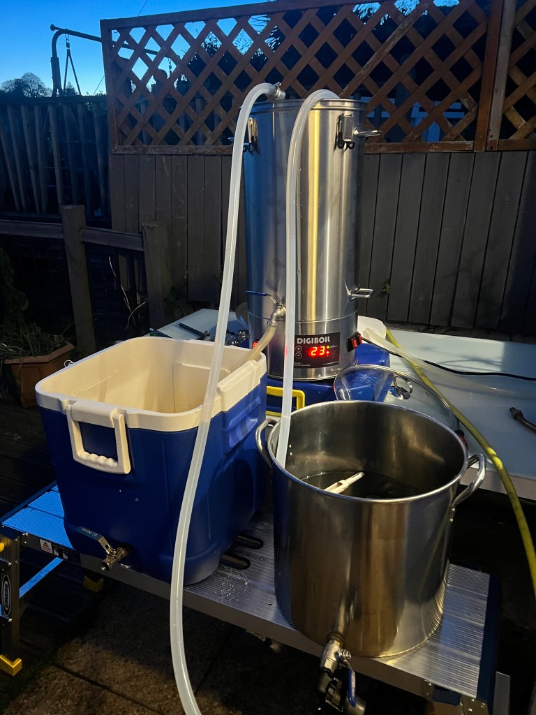 I needed to make one extra purchase, of course. My old boiler was sold to a local cricket club where it will go back to being a huge tea urn, and I’ve replaced it with a Digiboil 35 litre digital boiler – a definite upgrade that will allow me to use my coil to keep mash temperatures where I want them to be. A quick thanks to Paul at Angel Homebrew who initially sent me the wrong boiler but had the correct one with me less than 24 hours later – highly recommended service!