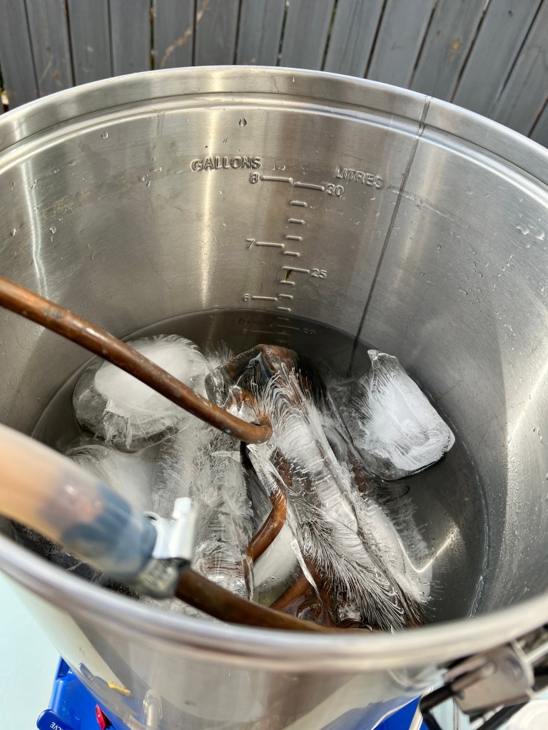 The thing is, I had most of the gear I needed, but I wasn’t making the best use of it. For example, I was using an immersion chiller – a glorified piece of coiled copper pipe through which you use as a heat exchanger – but, because I was running water through it, it was really messy and hard to manage indoors. I could have a much tidier setup by sitting the coil in cold water and running the hot wort through instead. This also meant I could properly chill the wort immediately after boiling, leading to a good ‘cold break’ and hopefully cleaner beer as a result.